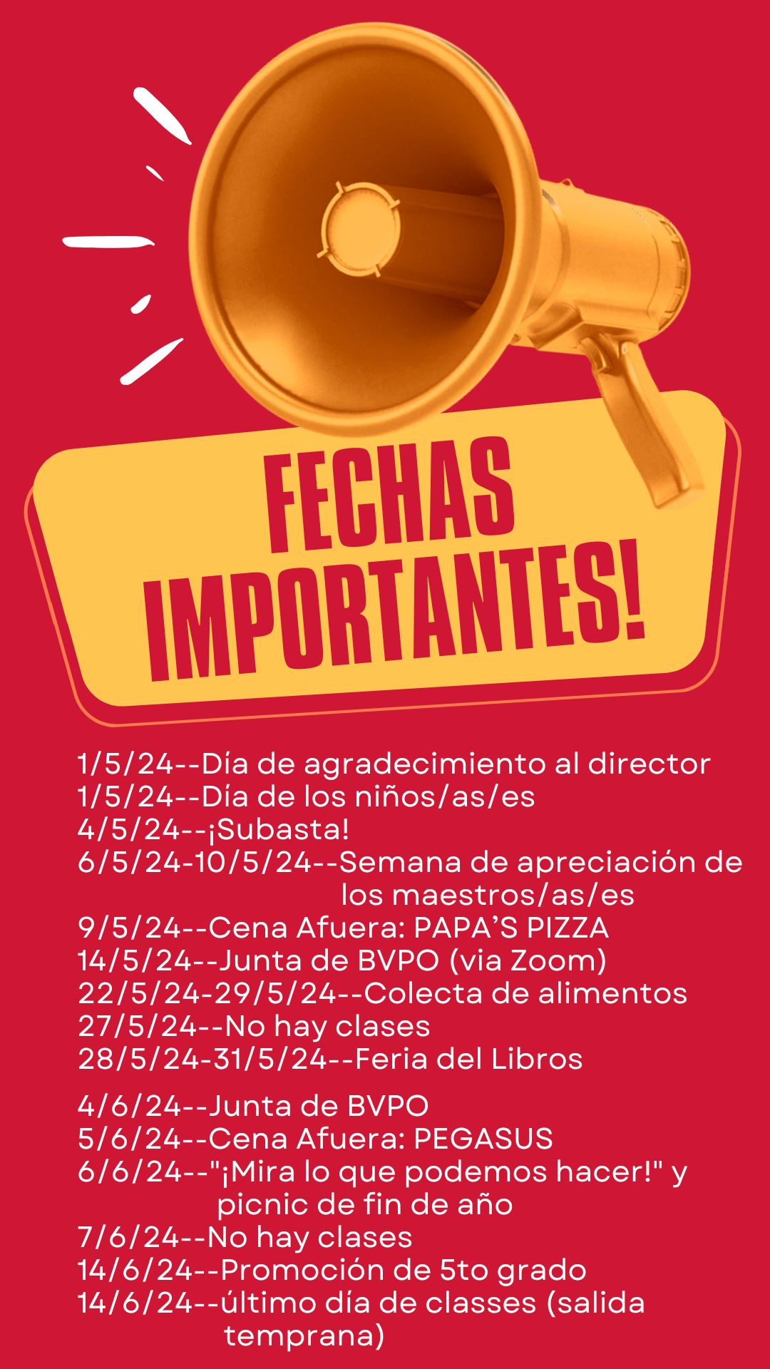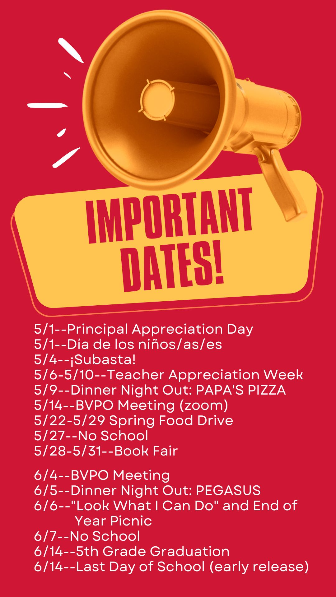 --------------------------------- Wednesday, May 1st, we're honoring our incredible principal!